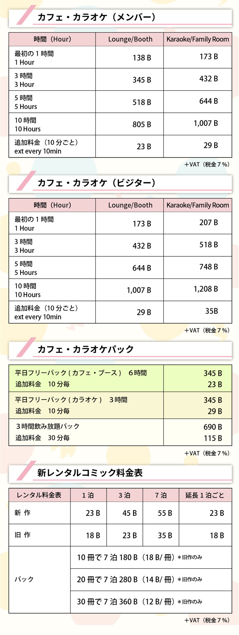 ご利用料金(タイバーツ)